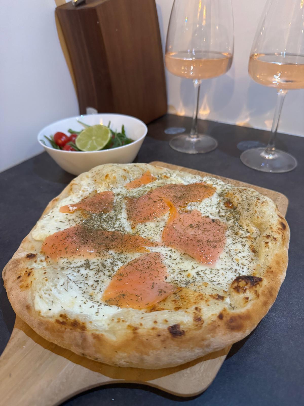parmesan, mozzarella, saumon fumé, aneth, citron